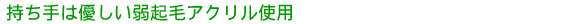 カバンの持ち手は、長さの調整が出来ますので、手提げカバンから、ショルダーバッグまで、お好きな持ち方が出来ます。持ち手は黒のアクリルですが、弱起毛で、手や肩にも優しい柔らかなものを使用しています。