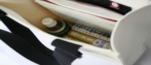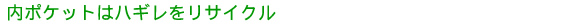 当初内ポケットはさほど重要視していませんでした。しかしメーカーから、底の深いバッグだけに、財布が底にあると、出し入れが不便という提案を受けて、付けてもらいました。また、開口部にファスナーは付けませんでした。コストの問題よりも、出し入れが頻繁な携帯電話や小物入れとしても使用するための配慮です。そして、この部分の素材については、バッグによって様々な素材を使用しています。本来素材については、丈夫な布を見当したのですが、リサイクルを考えて、鞄メーカーに残されている、いろいろな鞄素材の端布(いわゆるハギレ)を頂戴して制作することにしました。ですから、ナイロンのケプラー状袋があったり、デニム袋があったり、今回注文したバッグだけでも数種類の素材が使用されています。とはいうものの、縫製をごらんいただけばわかると思いますが、ちゃんと整形した上でバイアステープで縁かがりした仕上げは、どこに出しても自慢の出来る出来映えとなりました。こんなところにハギレを使用するというのも、「あげくだ」風のエコなのです。