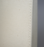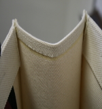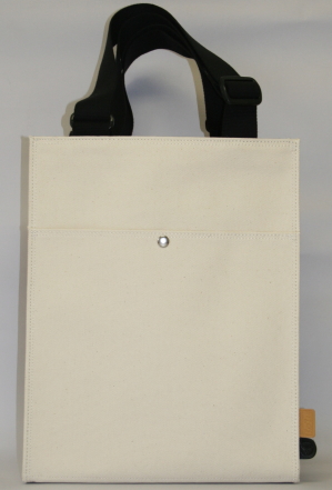 生地の色は生成(きなり)としました。生成は無漂白・未染色ですから、綿糸本来の薄クリーム色をしています。漂白をしない・染色をしないということで、薬品を使わない・水を使わないということで、すこしだけエコを考慮してみました。でも、帆布4号は、はっきり言って、ごわごわのがちがちで、バッグに何も入れなくても直立するほどのハードさを誇っています。よほどのモノを入れない限り、型崩れを起こしません。 |