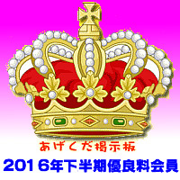 優良会員は、今後毎年上半期(1月〜6月)と下半期(7月〜12月)に分けて選抜し、あげくだ掲示板とあげくだビギナーズ上にて、皆様にお知らせいたします。