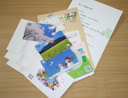 時折あげくだには、金券や訪問時のおみやげ商品をお届けくださる方がいますが、その場での御礼を申し上げるのみで、公表してきませんでした。